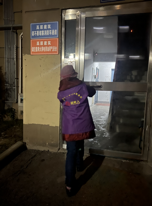 志愿者針對小區(qū)的公共場所、交通要道、單元樓道加強巡邏工作,看到未關(guān)的單元門及時上去關(guān)好,并向居民群眾宣治安防范、消防安全的重要性。同時提醒居民由于天氣寒冷要注意防火、用電、用氣的安全,外出時關(guān)好門窗、佩戴好口罩,注意防火、防盜、防詐騙及個人防護等安全事項,增強廣大居民的安全防范意識,對巡邏中發(fā)現(xiàn)的問題及時勸阻,將各種安全隱患消滅在萌芽狀態(tài)。