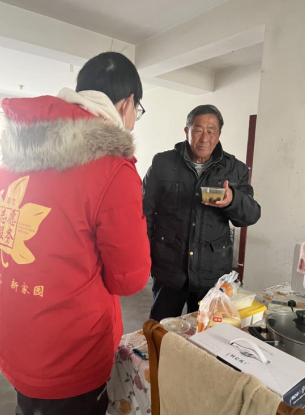 家住欣旺花苑小區(qū)的獨居老人李廣后,因腿腳不便,加上身體狀況不好,做飯成了困難,當老人接過“愛心餐”之后,不停地感謝道:“你們不光為我打掃衛(wèi)生、上門量血壓、檢查身體,現(xiàn)在還為我送飯,這個雞湯老遠我就聞著香味兒了,真是不管什么時候都想著我們。”