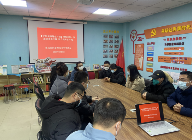 2023年元月6日上午,南京市棲霞區(qū)馬群街道果場社區(qū)依托新時代文明實踐站,組織社區(qū)環(huán)保工作者、“齊益果”巡河小分隊志愿者在社區(qū)一樓會議室開展主題為“河道巡查不松懈 助力提升水環(huán)境”的社區(qū)河道巡查會議。會議旨在春節(jié)前強化對轄區(qū)河道的巡查力度,對目前河道存在的問題進行梳理解決。