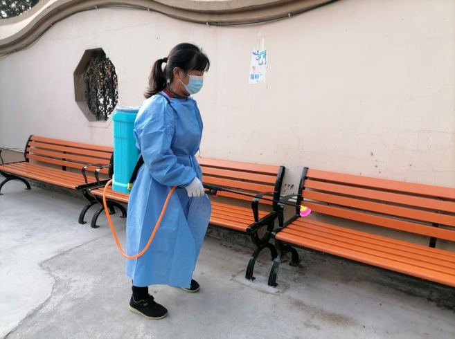 每天志愿者小組都準時集合,按照規(guī)范穿戴好防護工具,拿著消殺用品,細致地對小區(qū)樓道、公共場所、樓門出入口、樓梯扶手、公共座椅、健身器材、環(huán)保屋等區(qū)域進行全面消毒,確保沒有衛(wèi)生死角,有效阻斷病毒傳播途徑。同時,新合小區(qū)物業(yè)人員還加大了小區(qū)的保潔力度,包括路面清掃、樓道垃圾清理以及小區(qū)公共場所日常通風換氣等。志愿者姚臘梅表示,“轄區(qū)群眾的生命健康安全始終是基層工作的重中之重,目前新冠病毒的傳播力依舊很強,做好消毒工作仍是保障群眾減少傳染風險的重要途徑。”