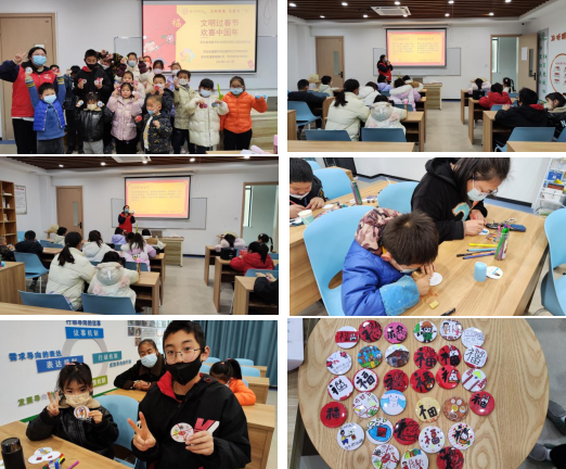 文明過節(jié),歡度新春。社區(qū)青少年兒童手繪制作“文明過節(jié)”徽章,倡議度過一個平安健康、低碳環(huán)保、勤儉節(jié)約、平安祥和、文明和諧的新年,倡導(dǎo)樹立文明過年新風(fēng),用文明之風(fēng)傳承傳統(tǒng)習(xí)俗,用文明行為歡度祥和新年。
