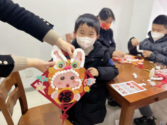 了解過(guò)習(xí)俗,小朋友們紛紛動(dòng)手制作“福兔”,將自己對(duì)新一年的祝福與期待都融入了手工作品當(dāng)中?,F(xiàn)場(chǎng)小朋友激動(dòng)地表示,“我要把這個(gè)福兔貼到大門上,這樣每一個(gè)人都會(huì)接受福兔傳遞的福氣啦!”活動(dòng)最后,志愿者向小朋友們送上了新春祝福,也對(duì)小朋友們的新年提出了期待,“希望大家能夠保持閱讀的好習(xí)慣,做到‘好讀書、讀好書、讀書好’。”(劉正雪)