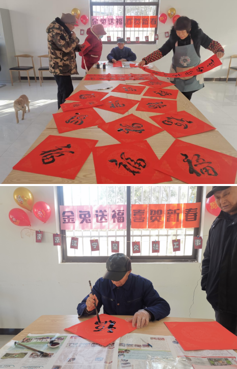 寫(xiě)春聯(lián)、貼福字是中華民族延續(xù)至今的一項(xiàng)傳統(tǒng)迎新年方式,為了迎接新春佳節(jié)的到來(lái),將溫暖與祝福傳遞到村民心中,我們邀請(qǐng)了村上的尹文友爺爺為村民們寫(xiě)春聯(lián)、送“福”字。
