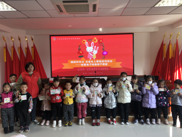 為了豐富社區(qū)孩子們的業(yè)余生活,鍛煉他們的動手能力,加強親子溝通,增強親子之間的情感互動交流,在新春佳節(jié)來臨之際營造喜慶、祥和的氣氛,1月17日,江寧區(qū)秣陵街道牛首社區(qū)開展“繽紛的冬日”未成年人寒假活動——創(chuàng)意兔子親子繪畫。