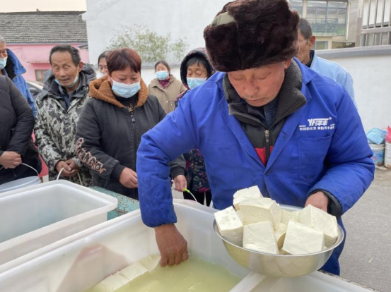 “豆腐代表‘多福’,年糕寓意‘年年高’,希望通過這么一份新春禮包,向村民送去美好的新年祝愿,祝福所有的村民新的一年多福多喜,幸福指數(shù)年年攀升。”牌坊村相關(guān)負(fù)責(zé)人介紹到。此外,牌坊村還為村內(nèi)80歲、90歲以上老人每人分別準(zhǔn)備了300元、500元新年慰問金,祝福他們福壽安康。