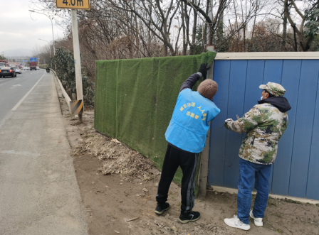 2023年1月18日,為了保障居民出行安全,防止破損的圍擋對路過的居民造成傷害,南京市棲霞區(qū)棲霞街道紅梅社區(qū)城市治理公眾委員組織城市治理志愿者對破損的圍擋進行修復(fù),清理了圍擋邊的垃圾和落葉。