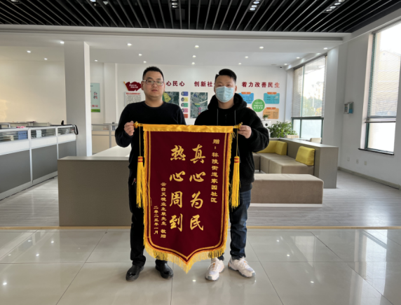 “真情為民 熱心周到” —— 金燦燦的大字在紅彤彤的錦旗上格外引人注目,近日,南京市江寧區(qū)秣陵街道家園社區(qū)云臺(tái)天境業(yè)主為社區(qū)送來(lái)錦旗,對(duì)社區(qū)2022年各項(xiàng)工作給予肯定,對(duì)社區(qū)工作人員疫情以來(lái)盡職盡責(zé)、心系居民為民的服務(wù)表示感激。