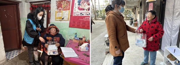 “咚咚咚......老人家,這是你的防疫禮包,里面有退燒藥、抗原、體溫計等物資,用藥遵醫(yī)囑,冬季氣溫低,要多注意身體。”每到一戶居民家中,志愿者一邊向居民送上暖心包,主動關(guān)心居民的身體健康狀況和生活情況,一邊叮囑居民做好個人防護,細心為群眾講解了用藥說明,并告知相關(guān)注意事項,將更多關(guān)愛送到家中。“疫情面前,我們要保持良好心態(tài)、做好日常防護,現(xiàn)在有了這份防疫包,我的心里更踏實了!”領(lǐng)取到防疫包的居民紛紛表示。