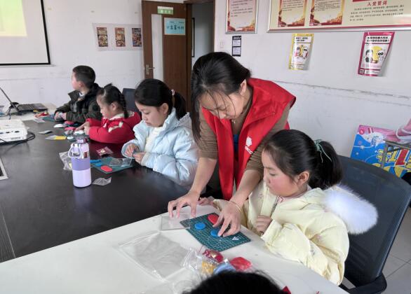 活動(dòng)中,工作人員帶領(lǐng)孩子們一起玩“大風(fēng)吹”“蘿卜蹲”游戲,帶動(dòng)起了全場的氣氛。隨后,工作人員介紹了醒獅和風(fēng)鈴的由來及寓意,并詳細(xì)講解了醒獅風(fēng)鈴的制作步驟和注意事項(xiàng),帶領(lǐng)孩子們親手開始制作。在工作人員的幫助下,孩子們認(rèn)真地研究著手里的材料,依著步驟慢慢完成自己的風(fēng)鈴,不一會(huì)兒,一個(gè)個(gè)形態(tài)各異、精致喜慶的醒獅風(fēng)鈴便完成了。