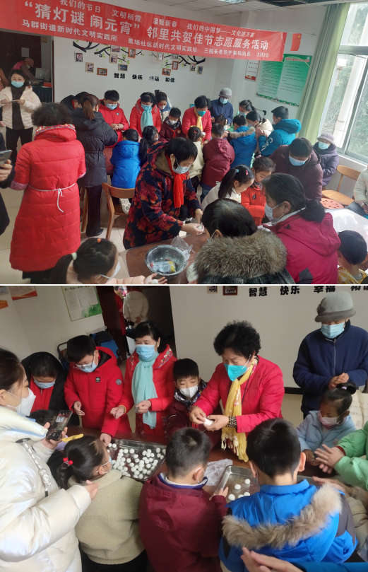 現(xiàn)場充滿歡聲笑語,居民們有的猜燈謎、有的包湯圓,包出的湯圓形狀各異,五花八門,當(dāng)大家吃著自己親手制作的勞動(dòng)成果——煮熟的湯圓,臉上洋溢起幸福的微笑。
