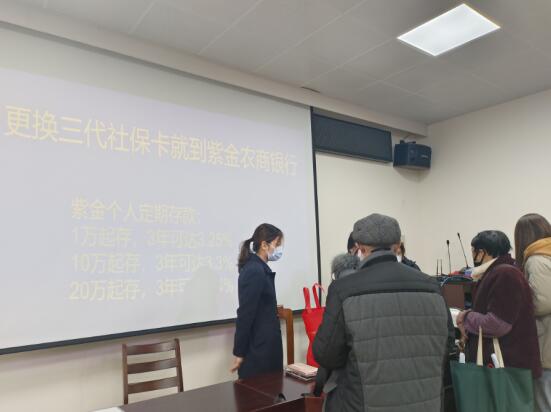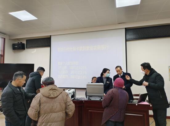 辦理現(xiàn)場(chǎng),村委會(huì)工作人員協(xié)助銀行工作人員現(xiàn)場(chǎng)為村民辦理第三代社??ú榫用窦せ钌绫?ǎ虼迕裥麄鞯谌绫?ń鹑诜?wù)、政務(wù)服務(wù)、公共服務(wù)、醫(yī)療健康等的各項(xiàng)功能,并耐心解答村民的相關(guān)疑問(wèn)。