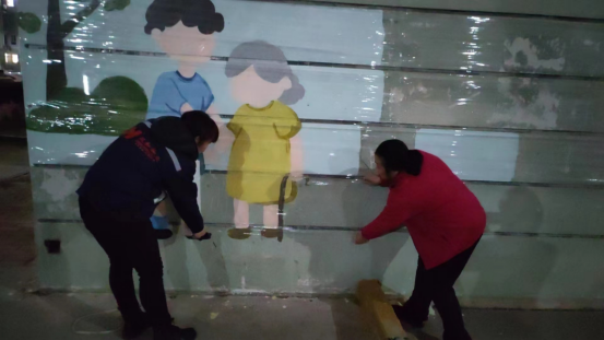 活動(dòng)開(kāi)始之前,志愿者通過(guò)在網(wǎng)格群內(nèi)發(fā)布活動(dòng)通知,招募活動(dòng)的參與人員,動(dòng)員轄區(qū)內(nèi)的家庭積極參與。2月18日下午,老師們將墻壁當(dāng)成畫(huà)布,一筆一劃認(rèn)真地將墻壁布局,進(jìn)行圖案的勾畫(huà),提前將輪廓畫(huà)好。碰到晚上下雨,公益樓長(zhǎng)還自發(fā)前往活動(dòng)場(chǎng)地將畫(huà)保護(hù)起來(lái)。