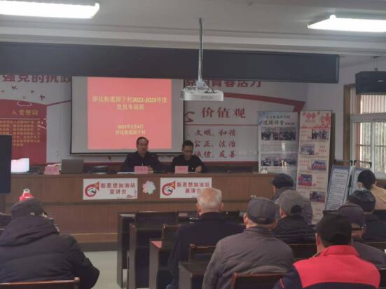 隨后,周子村黨總支邀請了區(qū)委黨校老師為周子村黨員宣講二十大精神識(shí),黨校老師圍繞“以黨的二十大精神引領(lǐng)意識(shí)形態(tài)工作”為主題,為全體黨員帶來一堂生動(dòng)的黨課,號(hào)召大家充分認(rèn)識(shí)學(xué)習(xí)宣傳貫徹黨的二十大精神的重大意義,深入領(lǐng)會(huì)精神實(shí)質(zhì),深刻把握核心要義,推動(dòng)黨的二十大精神在轄區(qū)落地生根。