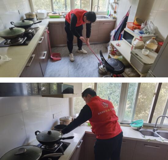 現(xiàn)場活動結(jié)束后,志愿者們來到轄區(qū)孤寡老人家中,與老人親切交談,仔細(xì)詢問老人最近的身體和生活情況,同時(shí)手持掃把、抹布等工具,擦拭桌椅、清掃垃圾、收拾廚房用品等。大家充分發(fā)揮不怕臟不怕累的精神,認(rèn)真清掃老人家中的衛(wèi)生死角,經(jīng)過大家的共同努力,老人的房屋煥然一新。