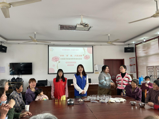 活動(dòng)室內(nèi),柏墅村志愿者正圖文并茂地講解著香薰蠟燭的制作步驟和其他注意事項(xiàng)。“不同于傳統(tǒng)意義上的蠟燭,香熏蠟燭屬于工藝蠟燭的一種,外型豐富多姿,色彩美輪美奐,燃燒時(shí)散發(fā)出怡人清香,能夠舒緩神經(jīng)、凈化空氣、消除異味。”動(dòng)手制作環(huán)節(jié),大家興趣滿(mǎn)滿(mǎn),開(kāi)始融蠟、滴精油、定型、散花等,經(jīng)過(guò)多項(xiàng)步驟,一個(gè)個(gè)小巧漂亮的香薰蠟燭出現(xiàn)在了大家的眼前,看著自己的作品,每位婦女的臉上都樂(lè)開(kāi)了花。