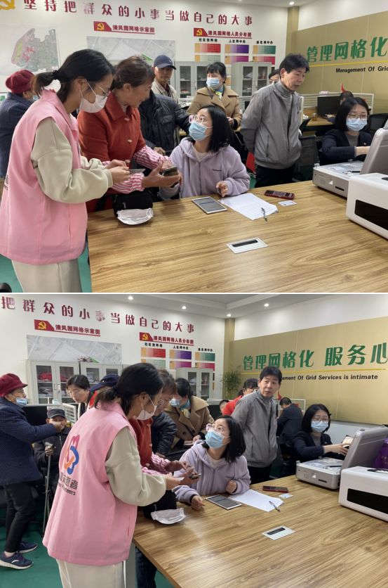 活動(dòng)現(xiàn)場(chǎng),社區(qū)工作人員積極協(xié)助銀行工作人員現(xiàn)場(chǎng)辦理社???,熱情講解社??ㄞk理流程和注意事項(xiàng),向居民宣傳第三代社??ǖ慕鹑诜?wù)、政務(wù)服務(wù)、公共服務(wù)、醫(yī)療健康等各項(xiàng)功能,指引居民依次進(jìn)行信息采集、簽字、拍照、確認(rèn)。辦卡過(guò)程中,針對(duì)居民的疑問(wèn)和不懂的地方,工作人員也會(huì)一一細(xì)致耐心地為其解答疑問(wèn),獲得社區(qū)居民的一致稱贊和肯定。