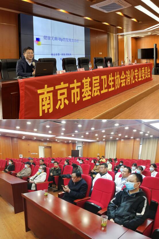 作為一種特殊的細(xì)菌,幽門(mén)螺桿菌幾乎普遍存在我們的日常生活中。實(shí)踐證明,“早預(yù)防、早發(fā)現(xiàn)、早診斷、早治療”是消化系統(tǒng)疾病防治工作的基本策略和關(guān)鍵。活動(dòng)開(kāi)始前,南京市基層衛(wèi)生協(xié)會(huì)副會(huì)長(zhǎng)兼秘書(shū)長(zhǎng)孫祥華為此次活動(dòng)致辭,基層衛(wèi)生協(xié)會(huì)等相關(guān)領(lǐng)導(dǎo)對(duì)此次活動(dòng)的開(kāi)展進(jìn)行了介紹發(fā)言,祿口社區(qū)醫(yī)院黨支部書(shū)記秦牛主持了會(huì)議。