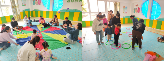 在常老師精心安排和指導(dǎo)下,孩子們和家長(zhǎng)們玩起了操作性、手指活動(dòng)等各種游戲,準(zhǔn)備了球、絲巾、彩虹、彩虹傘等,讓孩子們聽著音樂手腳動(dòng)起來,跟著一起動(dòng)起來?;顒?dòng)以互動(dòng)為核心,提高孩子手眼協(xié)調(diào)能力,以建立和諧、融洽的親子情感為目標(biāo),讓家長(zhǎng)融入課堂,把親子教育延伸到家庭教育中,共同促進(jìn)孩子們們的健康成長(zhǎng)。