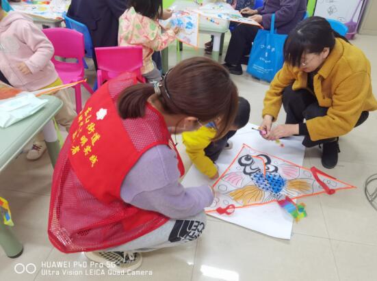 繪本閱讀結束后,鹿鹿老師為親子家庭分發(fā)風箏及顏料,組織大家一同在風箏上展開涂鴉,在親子家庭的默契配合下,一幅幅五彩繽紛的圖案一一呈現(xiàn),有蝴蝶、金魚、恐龍、小狗……看著自己親手繪制的風箏,兒童們臉上都洋溢著天真快樂的笑容,現(xiàn)場氛圍十分活躍。