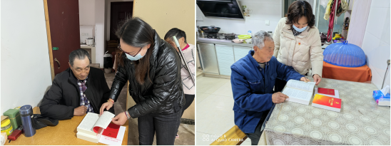 為使黨員冬訓“不掉隊”“不缺課”,佘村社區(qū)黨總支為轄區(qū)行動不便等無法參與集中學習的黨員送學上門。各黨支部書記耐心細致地詢問老黨員們的身體狀況和生活情況,傾聽他們對社區(qū)黨總支建設(shè)發(fā)展的意見建議,主動了解他們的實際困難,努力為他們排憂解難,送上黨組織的溫暖和關(guān)懷,把黨的聲音傳遞到他們心中,希望他們一如既往關(guān)心黨的事業(yè),并為老黨員們贈送《黨的二十大報告輔導讀本》等書籍。