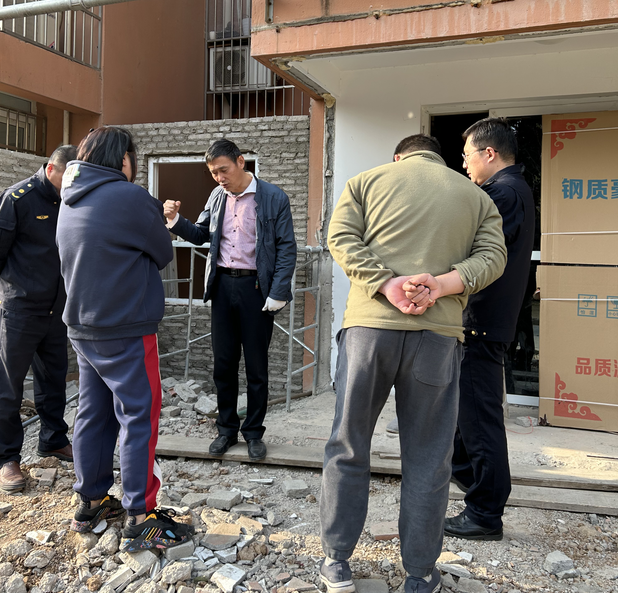 3月14日下午,馨康苑社區(qū)網(wǎng)格員在日常巡查中發(fā)現(xiàn)福康苑居民私自將陽(yáng)臺(tái)拆除用磚瓦結(jié)構(gòu)搭建違建。社區(qū)工作人員立即上門進(jìn)行勸阻,督促停止施工。