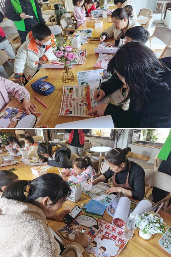 活動現(xiàn)場,老師通過介紹清明節(jié)的由來,引出祭奠革命先烈活動主題,向青少年們講述了烈士們的英雄事跡,希望大家能夠銘記紅色歷史,珍惜今天來之不易的幸福生活。隨后,老師組織現(xiàn)場青少年及家長共同完成“緬懷革命先烈 致敬時代英雄”手抄報,加深大家對紅色文化的認知。