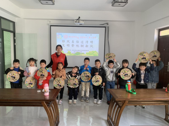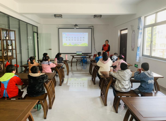 活動現(xiàn)場,志愿者向小朋友們介紹了清明節(jié)來源與習俗,以及清明節(jié)應該吃的食物,加深了大家對清明節(jié)傳統(tǒng)文化的了解。知識講解完后,志愿者邀請小朋友們背誦清明節(jié)主題的古詩或者講述清明節(jié)小故事,“清明時節(jié)雨紛紛,路上行人欲斷魂.....”小朋友清脆、富有情感的朗誦,一下子把在場的觀眾帶到了思念的情景當中。