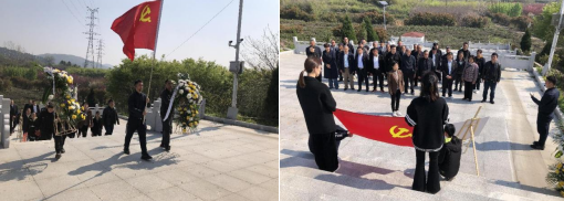 宣誓后,黨員敬獻花籃,全體人員在莊嚴肅穆的烈士紀念碑前,手捧菊花,向烈士們默哀,用無聲傳遞著對先烈的敬仰之情、對英雄的緬懷之意。