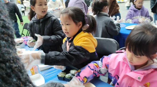 大家就坐后,志愿者們就給大家分發(fā)制作青團的材料,并且教大家如何制作青團。小朋友們在家長和志愿者們的帶領(lǐng)下,紛紛開始自己動手,捏面團、搓內(nèi)陷,把揉好的內(nèi)陷包進了面團里。