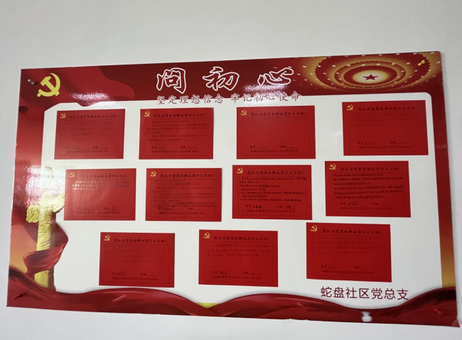 為了更好地了解黨員和群眾對支部班子、班子成員的意見建議,2023年2月,蛇盤社區(qū)黨總支組織兩委成員對黨員進行談心談話。了解他們工作、生活、個人重大事項等情況,聽取黨員群眾對班子建設(shè)的意見、建議和要求,并向他們發(fā)放“初心卡”進行填寫。在深入剖析自身實際的基礎(chǔ)上,引導(dǎo)黨員干部進一步堅定理想信念,加強黨性鍛煉,強化宗旨意識。