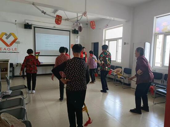 參加活動的老人們相互學習相互合作,從《十里紅軍》到《手扶欄桿》,奶奶們都能跟著音樂節(jié)拍打著花棍舞動自己。