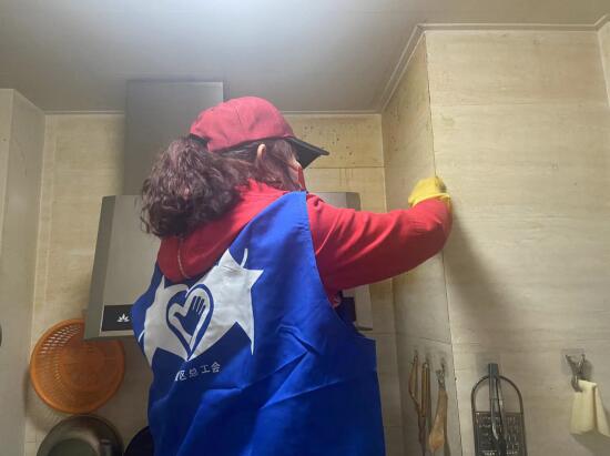 獨(dú)居老人董爺爺身患?xì)埣玻袆?dòng)不便,家里處處布滿(mǎn)灰層,廚房更是雜亂無(wú)章,他的心愿就是擁有一個(gè)清潔干凈的家。蛇盤(pán)社區(qū)聯(lián)合工會(huì)的兩位志愿者阿姨用近3個(gè)小時(shí)幫董爺爺把家里打掃的干干凈凈。老人看到家中煥然一新,為她們豎起大拇指。