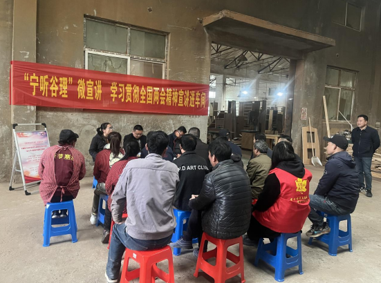 學習貫徹今年全國“兩會”精神是當前和今后一個時期的重要政治任務。近日,在江寧區(qū)新時代文明實踐中心、谷里街道新時代文明實踐所的指導下,荊劉村新時代文明實踐站邀請谷里街道民生保障部(民政)辦主任尹興超走進轄區(qū)企業(yè)蒙蒂塞洛家具廠宣傳宣講黨的政策,為企業(yè)的職工們帶來一場“全國兩會精神宣講”微理論課。