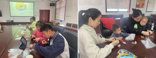 在志愿者的提問下,小朋友們紛紛動腦思考如何制作指南針,并對指南針的使用原理進(jìn)行發(fā)散性猜測。“我覺得指南針是因?yàn)橛形?,所以才能一直指向北方?rdquo;帶著好奇心,小朋友們利用志愿者提前準(zhǔn)備好的指南針制作材料,動手制作起來。遇到不知道該如何拼接的地方,小朋友們或是向家長和志愿者尋求幫助,或是互相交流指導(dǎo),每一位小朋友都順利完成了指南針的制作。