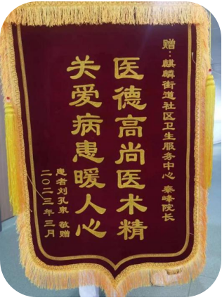 4月17日,治愈的劉大爺親手贈(zèng)予錦旗給外科醫(yī)生,感謝江寧中醫(yī)院秦峰主任通過(guò)緊密型醫(yī)療集團(tuán)對(duì)口幫扶,在家門口社區(qū)衛(wèi)生服務(wù)中心為自己進(jìn)行手術(shù)治療和康復(fù)指導(dǎo)。
