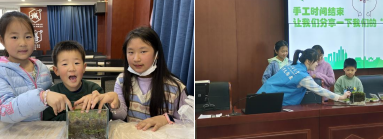 活動中,志愿者通過“海綿吸水”的演示,引起小朋友的興趣,并引出“海綿城市”的概念。