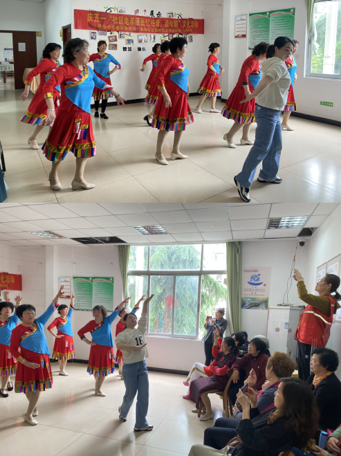 來(lái)自社區(qū)從事新業(yè)態(tài)工作的朵朵老師,平時(shí)是一名平臺(tái)簽約主播,利用閑暇時(shí)間參與到社區(qū)“寧小蜂”驛站組織的志愿服務(wù)活動(dòng)。今天,她帶著社區(qū)老年舞蹈隊(duì)進(jìn)行了相對(duì)時(shí)尚且簡(jiǎn)單的舞蹈表演。“社區(qū)老年居民們對(duì)于文化生活的需求是迫切的,今天的舞蹈節(jié)目,我們?cè)谒脑碌拙烷_(kāi)始排練了,大家都希望能夠展現(xiàn)出最好的一面,所以今天可以看到很多阿姨們表現(xiàn)得都十分投入。”