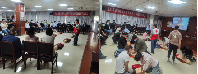 今年5月12日是我國第15個“防災(zāi)減災(zāi)日”,為切實提高社區(qū)居民防范各類自然災(zāi)害的意識和自救互救能力,增強應(yīng)急救護(hù)意識。5月12日,南京市江寧區(qū)東山街道紅十字會聯(lián)合岔路社區(qū)開展免費紅十字救護(hù)員培訓(xùn),參會人員有社區(qū)工作人員、物業(yè)人員、轄區(qū)學(xué)校和社區(qū)居民。