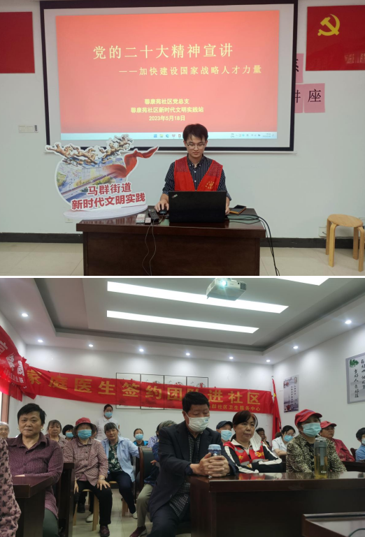 2023年5月18日,南京市棲霞區(qū)馬群街道馨康苑社區(qū)黨總支依托社區(qū)新時代文明實踐站理論宣講平臺開展了“二十大精神之加快建設(shè)國家戰(zhàn)略人才力量”宣講會。本次宣講由社區(qū)宣講團(tuán)成員開展,重點為大家介紹了建設(shè)國家戰(zhàn)略人才力量的內(nèi)容,以及為什么要在新征程上加快建設(shè)國家戰(zhàn)略人才力量。