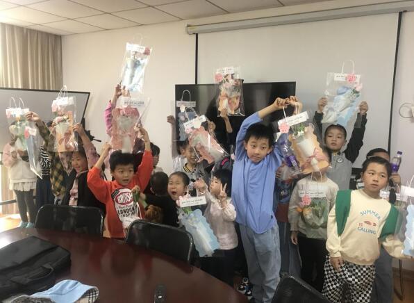 活動開始大家共同觀看紀錄片《人生第一次》第一集——出生|第一聲啼哭之前,感受母親的辛苦與不易,隨后在未成年人保護站志愿者的教學與指導下,小朋友們動手制作手工花束,寫下了對母親的祝福,活動最后,大家合影留戀,定格這一美好時刻。