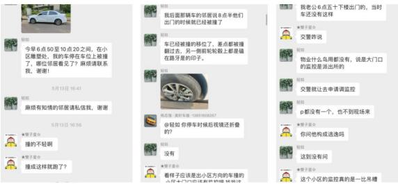 13日下午,南京市棲霞區(qū)馬群街道百水家園社區(qū)一位業(yè)主在微信群里反映情況,他的車停在小區(qū)內(nèi)被其他車剮蹭到并且肇事車主逃逸了,這位業(yè)主非常氣憤,因此在微信群內(nèi)進(jìn)行反映,描述情況后,小區(qū)內(nèi)很多業(yè)主鄰居為其出謀劃策,覺得這個(gè)事情必須要解決,查監(jiān)控等方法都可以實(shí)施,我們社區(qū)工作人員了解后第一時(shí)間幫助業(yè)主進(jìn)行處理解決問題。