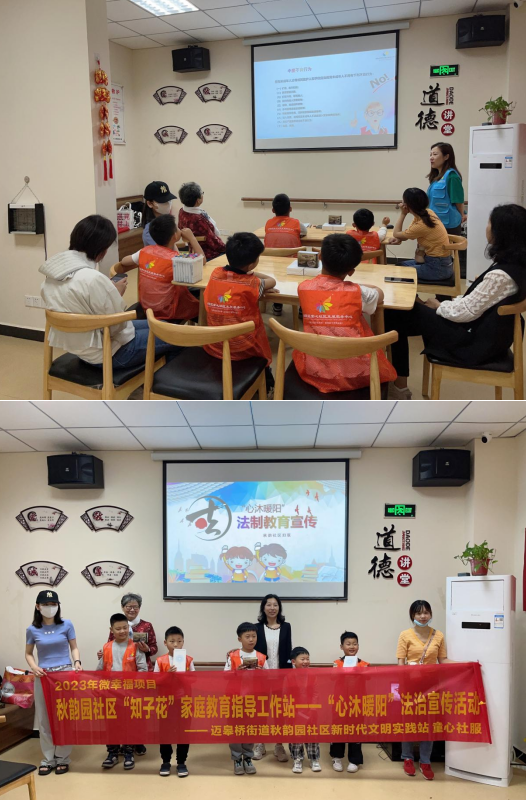 今年5月是第三個“民法典宣傳月”,為進(jìn)一步加強(qiáng)民法典學(xué)習(xí)宣傳,引導(dǎo)青少年從小掌握法律知識、樹立法律意識,5月21日,南京市棲霞區(qū)邁皋橋街道秋韻園社區(qū)掌上云微幸福項(xiàng)目“知子花”家庭教育指導(dǎo)工作站為轄區(qū)內(nèi)青少年家庭開展了“心沐暖陽”法治宣傳活動。