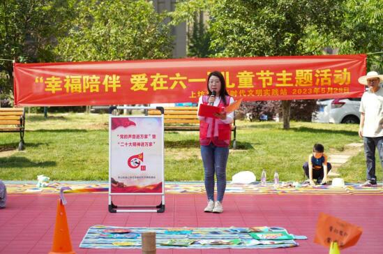 上坊新城小區(qū)活動現(xiàn)場,社區(qū)理論宣講員組織孩子們開展《學(xué)習(xí)黨的二十大精神 爭做新時代好少年》主題宣講,接著志愿者帶領(lǐng)孩子們開展互動節(jié)目游戲,包含小丑互動表演、愛的魔力套圈圈、“愛要動起來”親子體驗活動、童趣集市等。一系列豐富多彩的活動為孩子們送上節(jié)日的祝福,也將愛國主義的種子播撒進他們幼小的心靈。