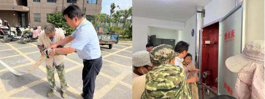 本次演練氛圍理論培訓(xùn)和實踐操作兩個部分。培訓(xùn)人員首先帶領(lǐng)物業(yè)工作人員到居民樓內(nèi)的消防栓前,詳細講解消防栓的使用方法、高效滅火要領(lǐng)和火災(zāi)發(fā)生的安全逃生方式,叮囑工作人員牢記注意事項。隨后的演練環(huán)節(jié)中,大家嚴格按照規(guī)范進行,彎腰、捂住口鼻、有序撤離,并在培訓(xùn)人員的指導(dǎo)下,完成消防水槍的安裝使用和滅火器撲滅火苗,讓參與演練的所有工作人員“零距離”體驗滅火過程,增強實操能力。