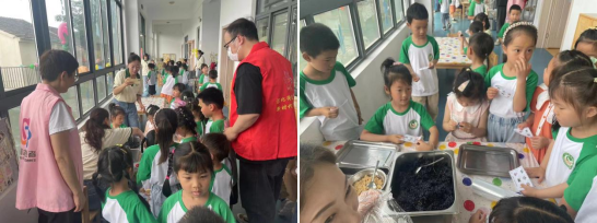 活動(dòng)現(xiàn)場(chǎng),社區(qū)網(wǎng)格員和巾幗志愿者為小朋友們準(zhǔn)備了烏米飯團(tuán)的制作材料,小朋友們根據(jù)自己的口味添加不同的餡料,在志愿者的幫助下包成一個(gè)大大的飯團(tuán)。在制作的過程中,志愿者還為小朋友們科普了烏米飯團(tuán)傳承的歷史和重要意義。
