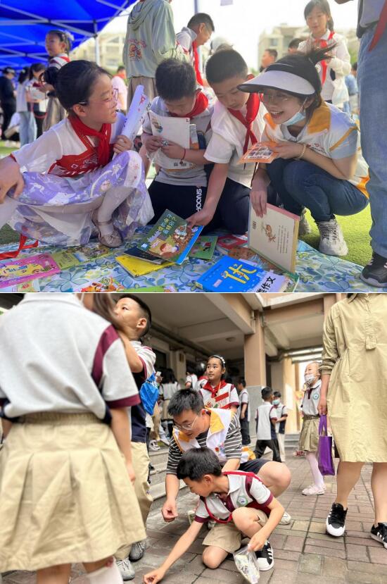 活動現(xiàn)場,志愿者們積極維持著秩序,及時幫助同學(xué)們避免危險行為,確?,F(xiàn)場的安全和順暢,此外,他們還協(xié)助老師和同學(xué)們整理現(xiàn)場的書籍,幫忙喊價和砍價等。義賣現(xiàn)場各種任務(wù)分工明確,有銷售員、收銀員、管理人員等一系列人物設(shè)定,銷售員們深諳銷售之道,紛紛展示自己的才藝,一場豐富多彩的快板表演,讓整個現(xiàn)場充滿了熱火朝天的氣氛。此起彼伏的叫賣聲、琳瑯滿目的愛心物品、獨特新奇的宣傳方式……吸引了很多人們駐足觀賞,爭相購買。