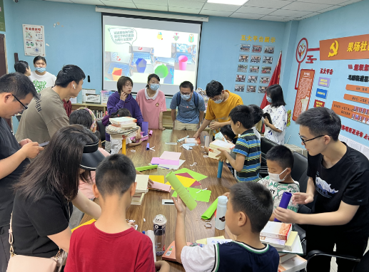 在學(xué)習(xí)中,志愿者們還幫助未成年人按照講師的進(jìn)度,開展了各階段的實(shí)驗(yàn)。有用紙片折疊成不同形狀的物體進(jìn)行承重實(shí)驗(yàn),有運(yùn)用模型進(jìn)行承重測試等,大家忙得不亦樂乎。