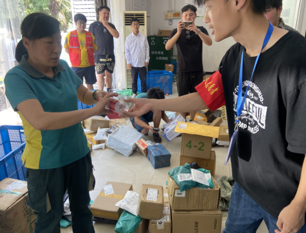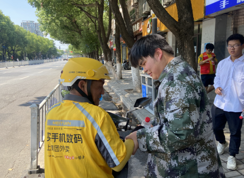 在社區(qū)馬群新街外賣小哥集中休息點和街頭,社區(qū)退役軍人服務(wù)站和民兵連的志愿者們跟他們嘮家常,詢問當前工作的情況,日常騎行要注意交通安全、遵守交通規(guī)則,暖心話語讓他們倍感親切,冰鎮(zhèn)過的礦泉水也緩解了他們之前忙碌的疲勞;在中國郵政,志愿者們給快遞小哥們幫了會忙,叮囑他們注重防曬和避暑。