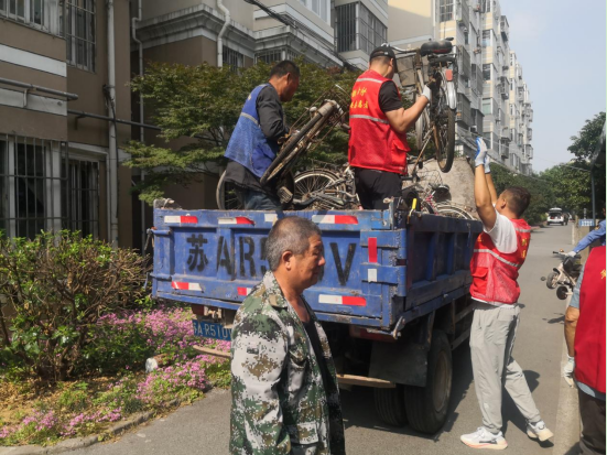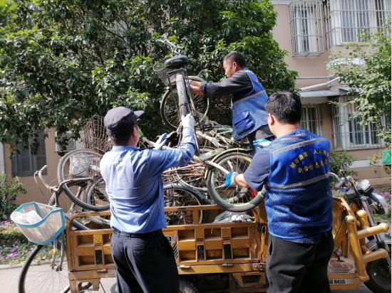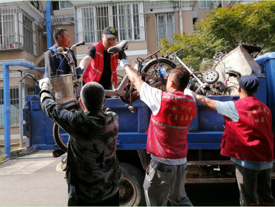 新合小區(qū)共有4棟住戶,盡管每年都會(huì)定期清理小區(qū)非機(jī)動(dòng)車車棚,依然存在隨意擺放廢舊車輛現(xiàn)象,這些“僵尸車”既影響了小區(qū)的整體環(huán)境,又占用了空間影響他人停車,對(duì)于原本就緊張的停車位來說,更是一種資源的浪費(fèi)。整治前期,在黨員的帶領(lǐng)下,城市治理志愿者通過實(shí)地查看分析,對(duì)長(zhǎng)期占用車棚停車位的“僵尸車”進(jìn)行了全面排查。在車棚清理現(xiàn)場(chǎng),志愿者們擼起袖子加油干,規(guī)整的、搬車的、抬車的,大家充分發(fā)揚(yáng)志愿者“不怕苦、敢打敢拼”的精神,將一輛輛車輛按箭頭方向規(guī)整到位,有序停放,志愿者們也將長(zhǎng)期無人使用的“僵尸車”搬出來清拖走,為小區(qū)居民恢復(fù)一片整潔干凈的通行環(huán)境。