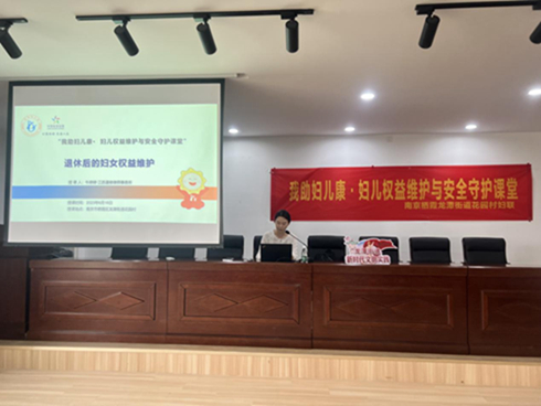 6月16日,南京市棲霞區(qū)龍?zhí)督值阑▓@村婦聯開展“我助婦兒康·婦兒權益維護與安全守護課堂”。本次活動邀請了江蘇漫修律師事務所的牛婷婷律師為轄區(qū)婦女群眾進行“退休后的婦女權益維護”相關法律知識的普及。